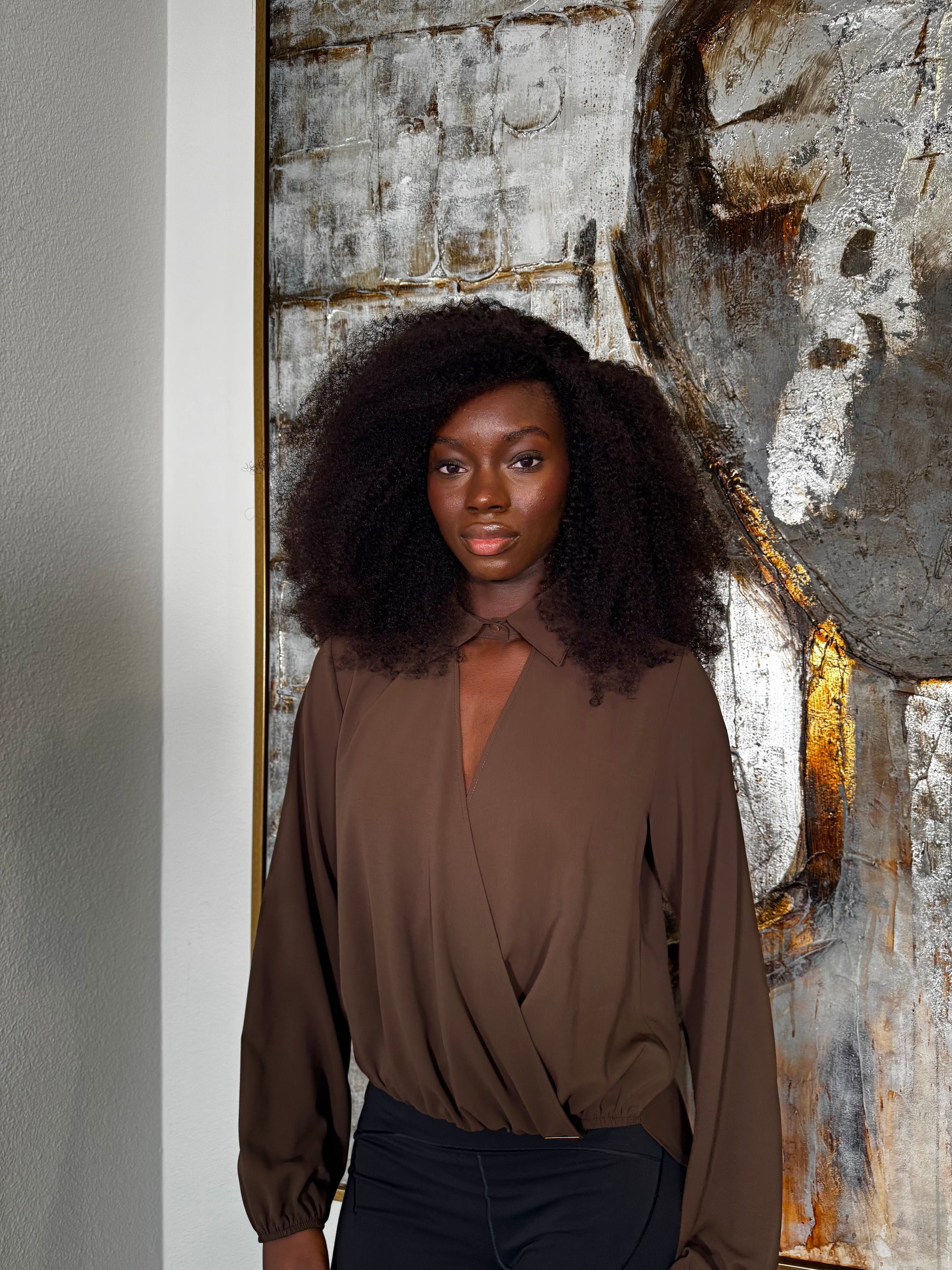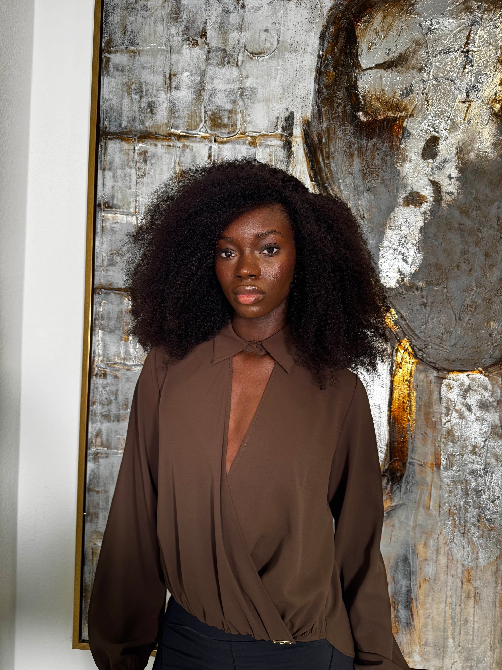 Dare to turn heads in this striking chiffon open collar top, where sheer elegance meets bold attitude, the daring open chest design commands attention. Delicate gold detailing adds a touch of luxury and sophistication, elevating your look from ordinary to unforgettable. Perfect for those who aren't afraid to make a statement and embrace their confidence with style.